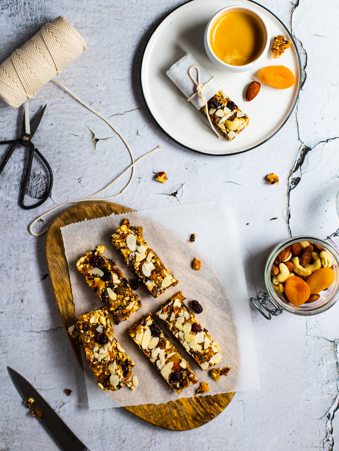 Fructele pe care le-am folosit eu, caise, prune, smochine și stafide, dar poți să le înlocuiești cu ce ai prin casă. Mai poți folosi curmale sau merișoare. Pentru nota crocantă a batonului am ales migdale si caju, dar poți pune si alune de pădure sau nuci.