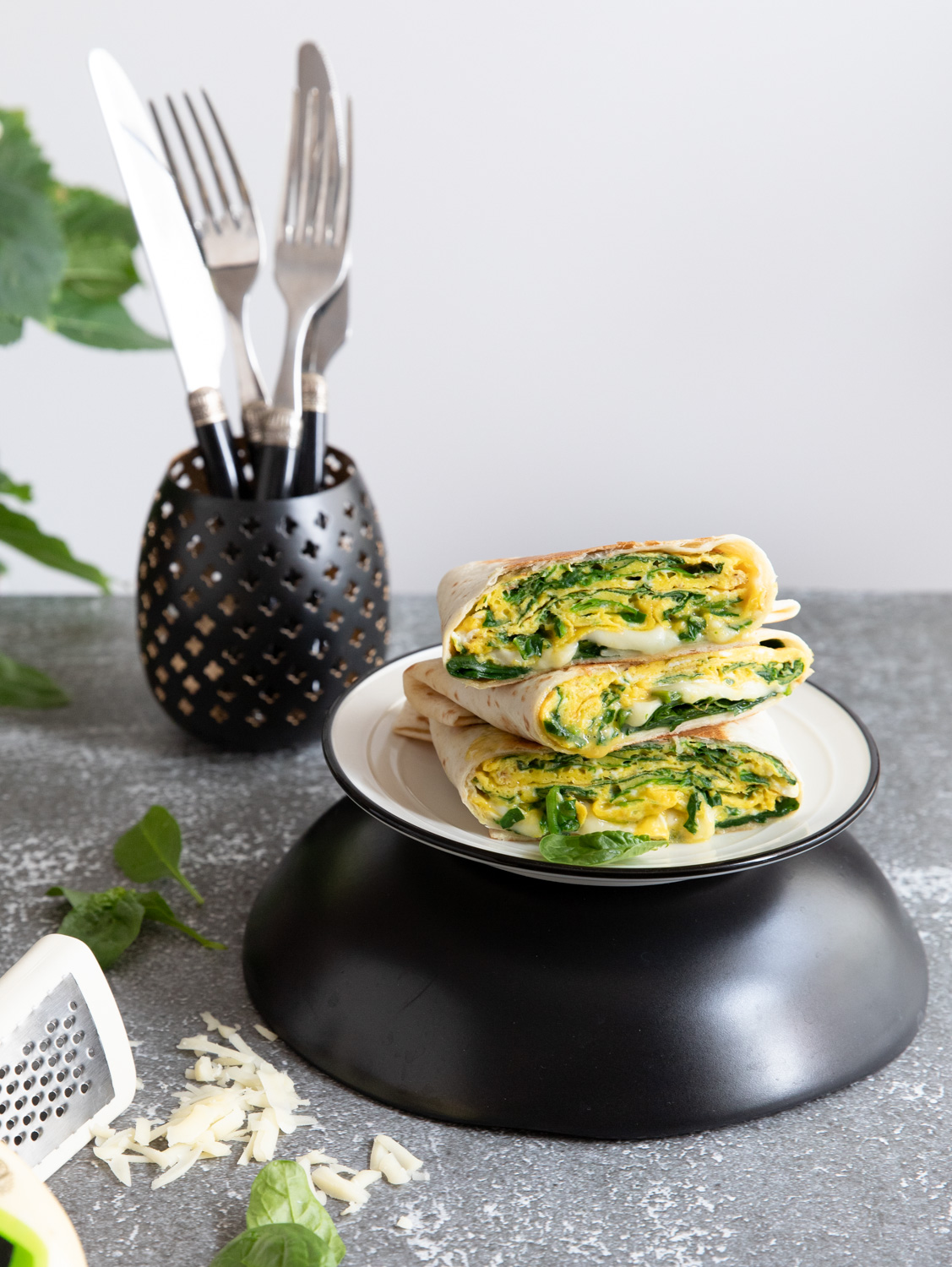Dacă nu vrei omletă cu spanac, poți să înlocuiești spanacul cu ingredientul tău preferat în omletă. Cu ciuperci, ceapă verde, bacon. Păstrezi, desigur, lipiile, cașcavalul și ouăle și poți să faci o quesadilla pe gustul tău.