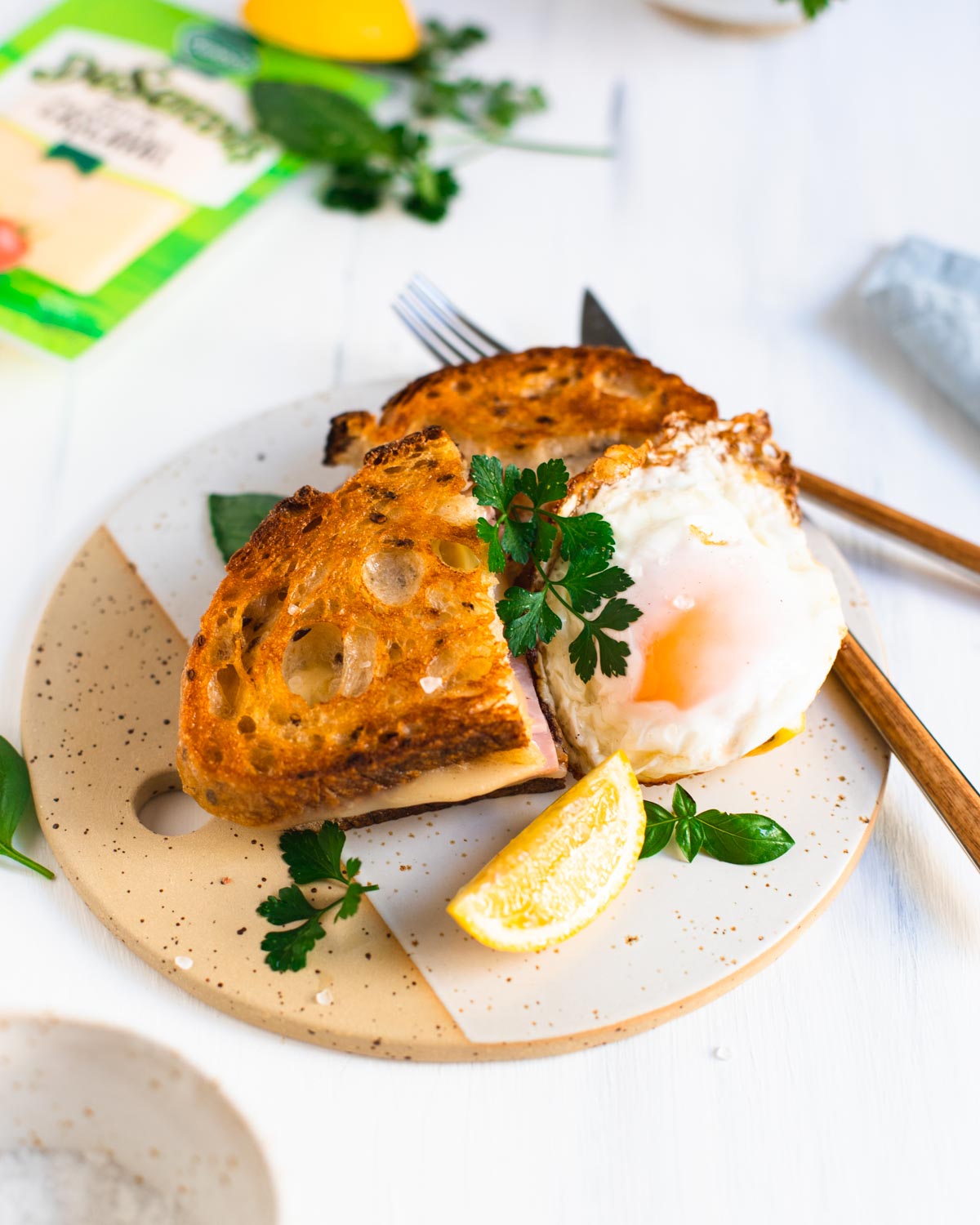Te poți opri aici cu rețeta sau poți continua și cu un ou ochi pe care să-l pui peste acest sandviș cald. Mai poți adăuga frunze aromate de verdeață, pătrunjel sau busuioc, și un strop de zeamă de lămâie. Din punctul meu de vedere abia acum se termină perfect rețeta.