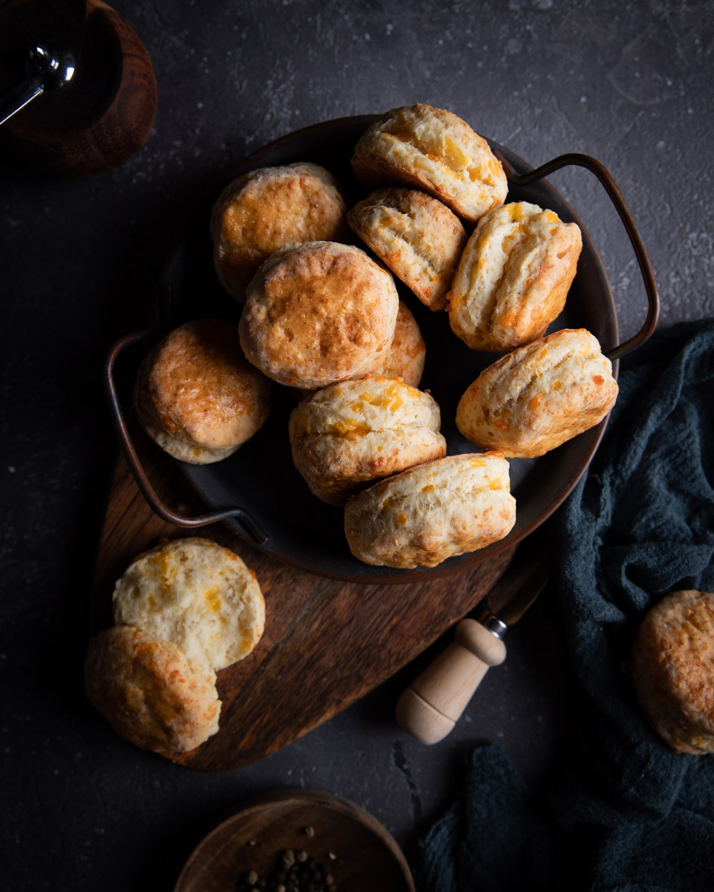 Câteodată lucrurile merg bine în bucătărie, câteodată e nevoie de mai multe încercări ca să obțin ceea ce vreau. În cazul acestor scones cu cheddar am copt mai multe ture, le-am încercat în mai multe variante.