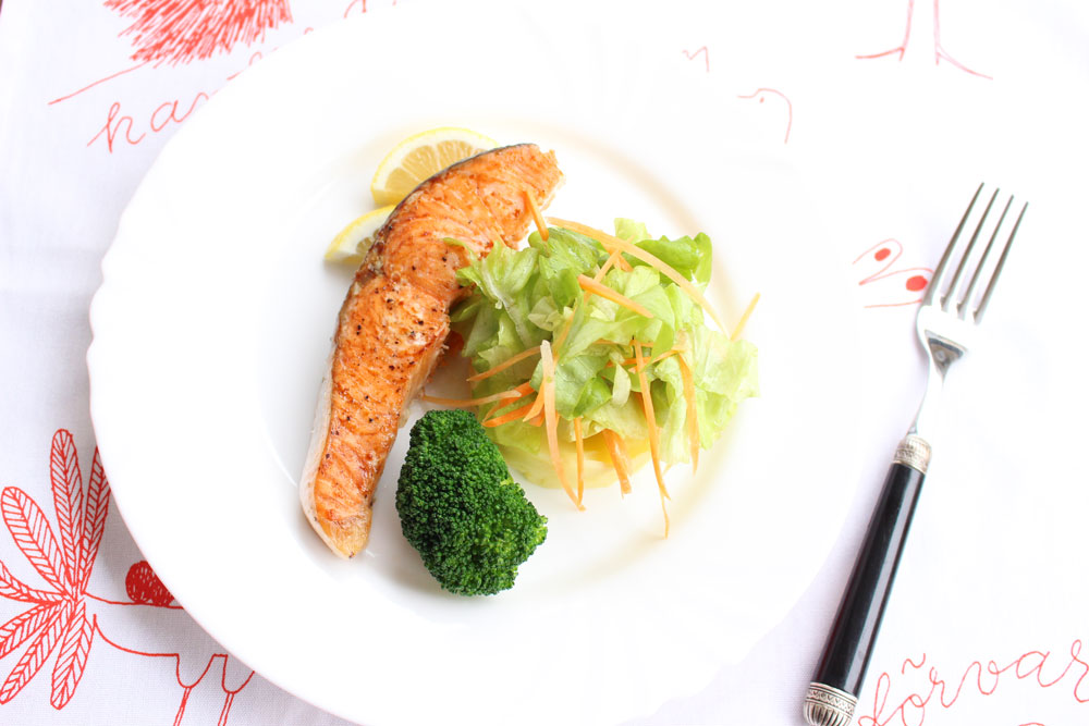 Pestele la cuptor il putem face atunci cand ne dorim sa avem o masa echilibrata, usoara si rapida. L-am preparat si servit, de data aceasta, alaturi de broccoli, piure de cartofi si salata verde, dar ii puteti face garnitura preferata. Iar daca vrem ca acest fel de mancare sa fie si pentru dieta atunci nu trebuie decat sa cantarim cantitatile pe care le punem in farfurie pentru o portie si sa adunati caloriile : somon gatit 170cal/100g, salata verde 17 cal/100g, o lingura ulei de masline 125cal, broccoli fiert 35cal/100g. Daca avem grija la cantitatea de ulei folosita putem obtine o masa de pranz sau de seara cu foarte putine calorii.